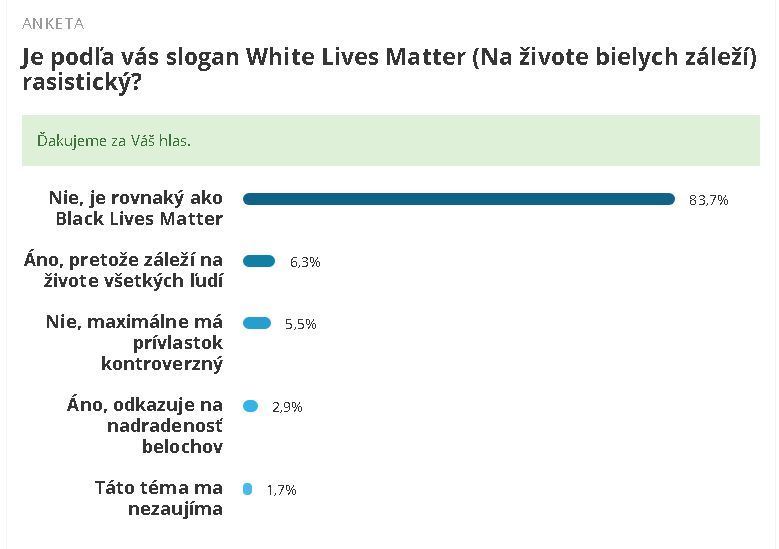 Chceli by sme sa vyjadriť, že vyvesením transparentu: WHITE LIVES MATTER, nevidíme nič čo by nás malo spájat s akýmkoľvek prejavom rasizmu, nakoľko myšlienka bola poukázať, že AJ NA BIELOM ŽIVOTE ZÁLEŽÍ. Dnes média nato ľahko zabúdajú a do pozornosti dávajú iba hnutie BLM.
