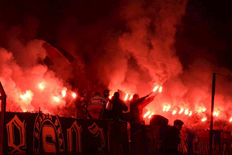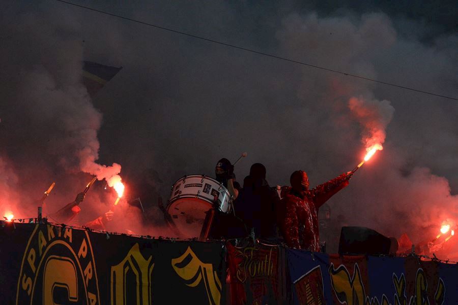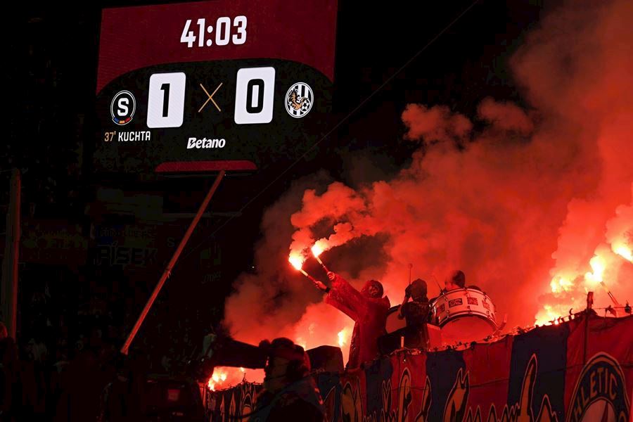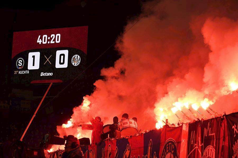 Sparta si doma zastřílela jak na hřišti, tak i v hledišti. Domácí ultras si připravili choreografii a chybět nemohla ani ohnivá show. Utkání sledovalo 15.099 diváků...