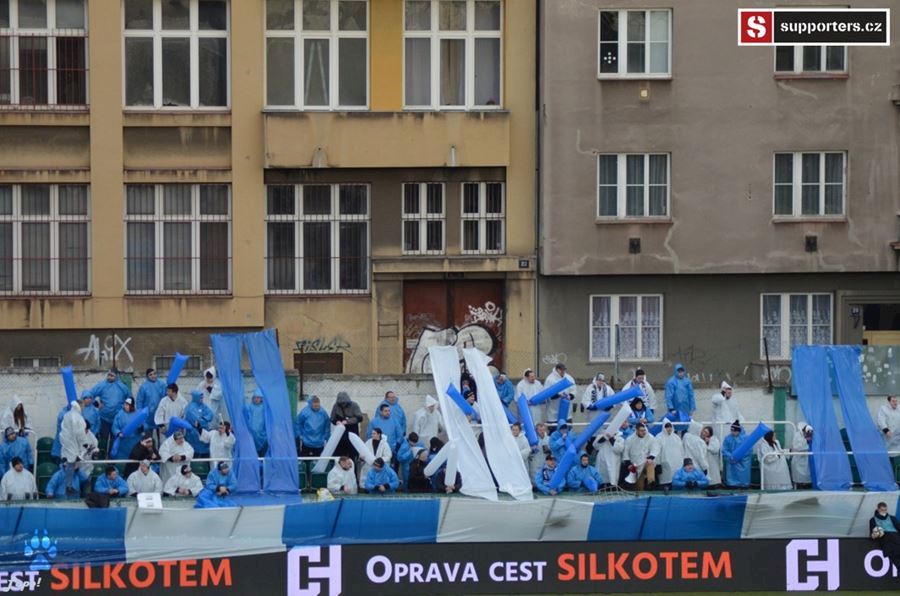 Při nástupu hráčů došlo k realizaci choreografie pro domácího hráče Jindříška, který v minulém kole překonal "bohemácký" rekord v počtu zápasů.