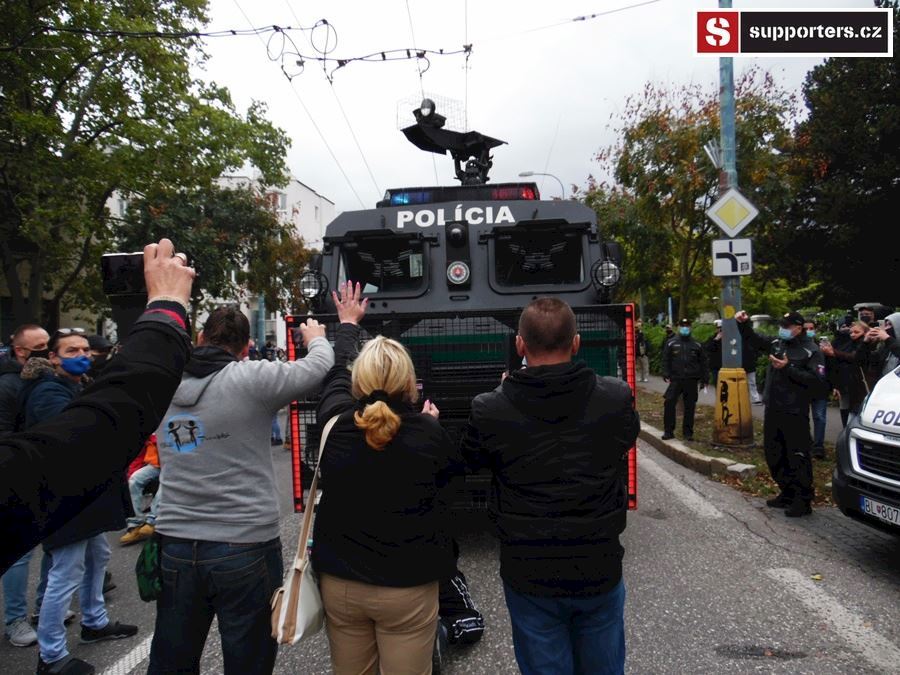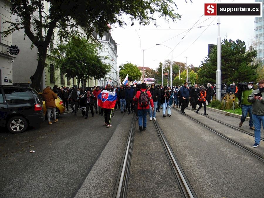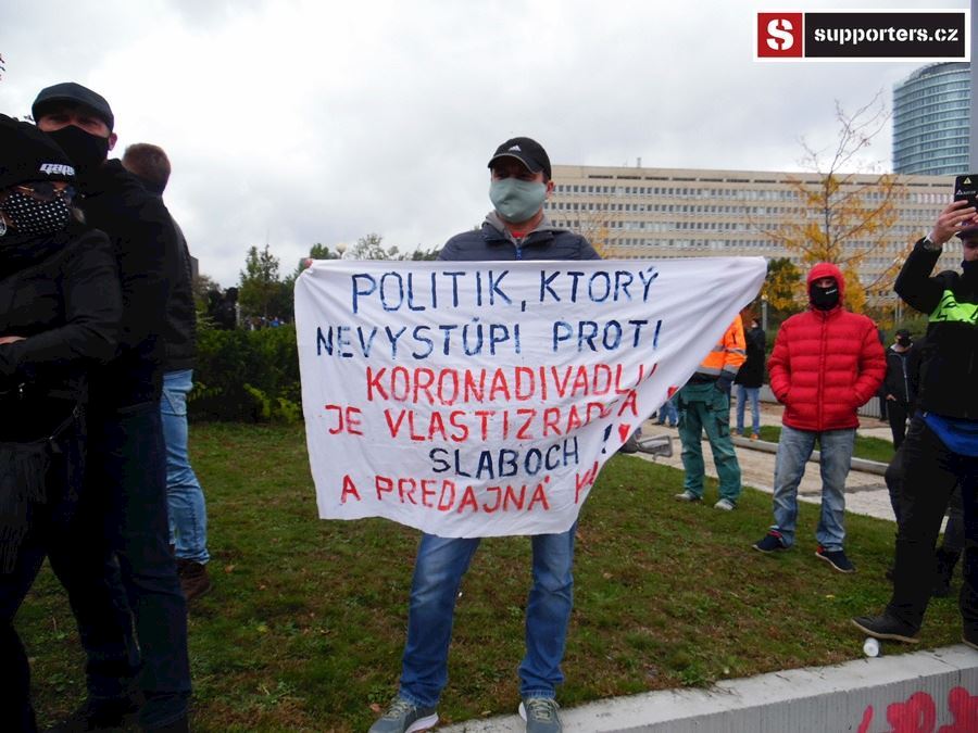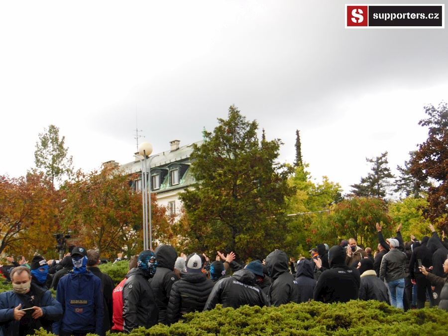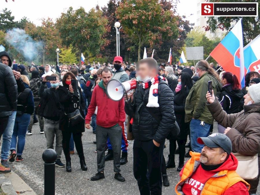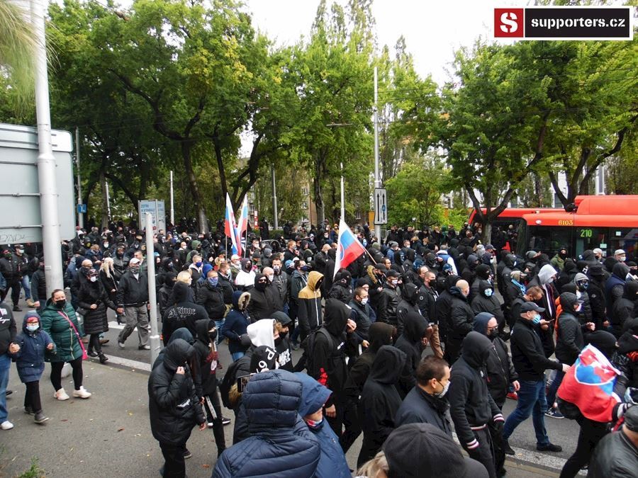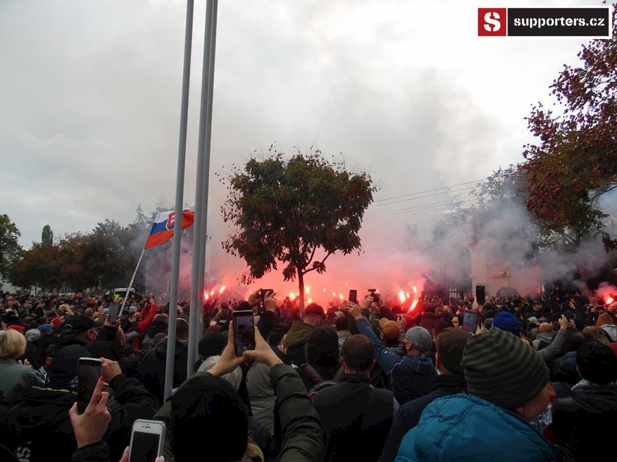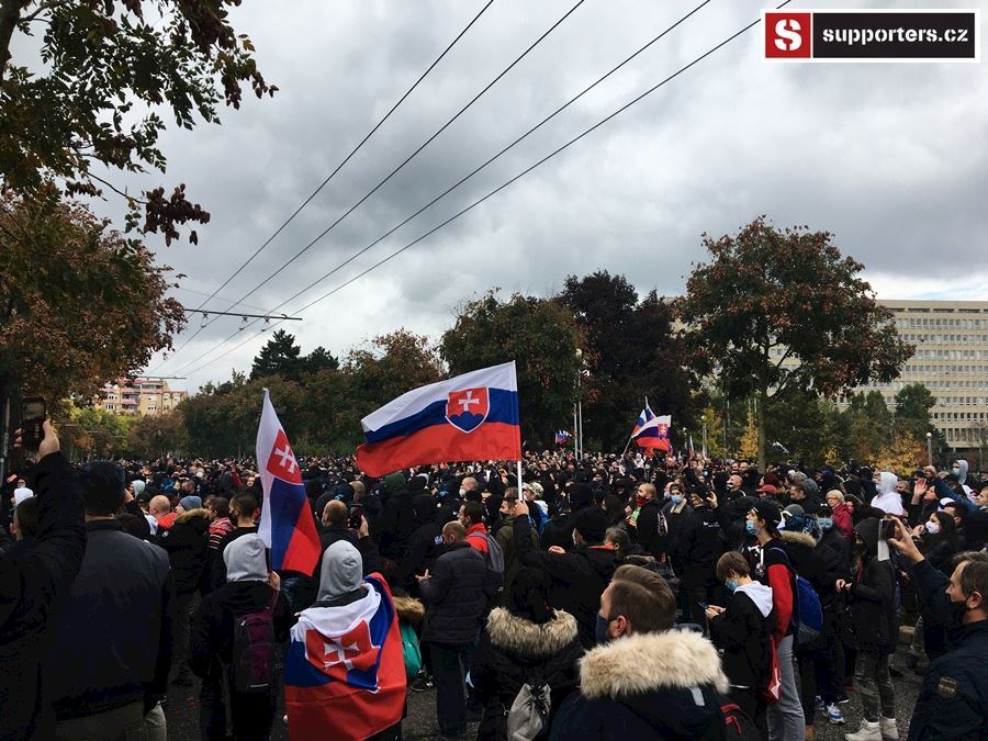 Včera (17.10.) sa v Bratislave konal veľký fanúšikovský protest proti reštrikciám vlády. Zraz bol naplánovaný na Hlavnej stanici, odkiaľ sa účastníci demonštrácie presunuli pochodom pred Úrad vlády Slovenskej republiky.