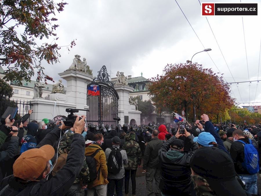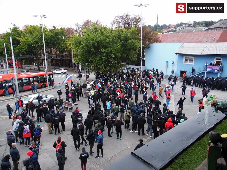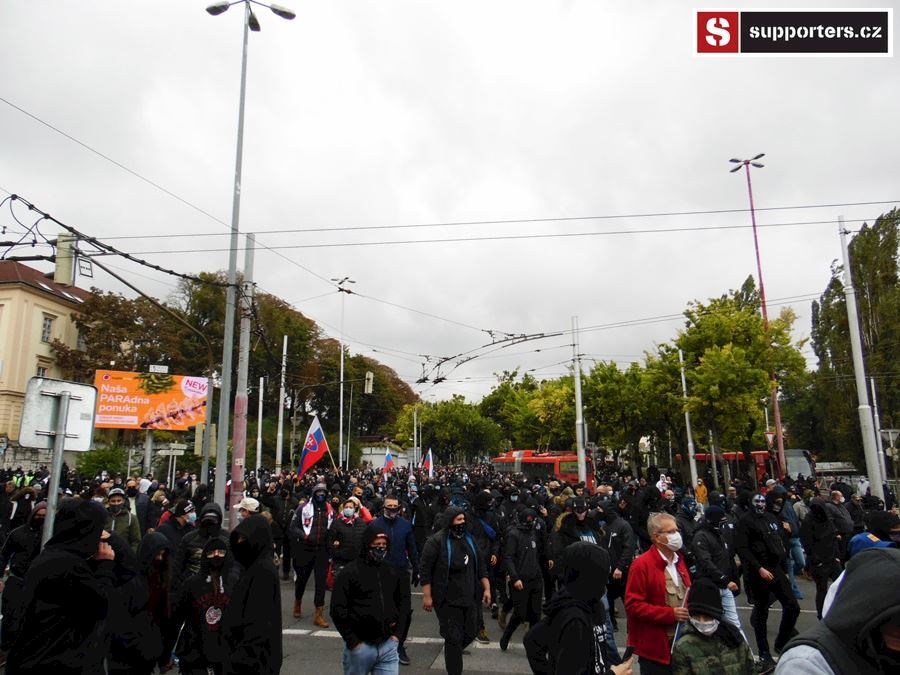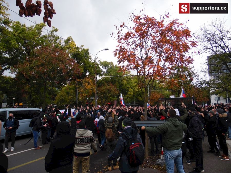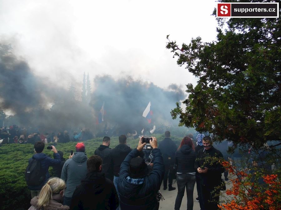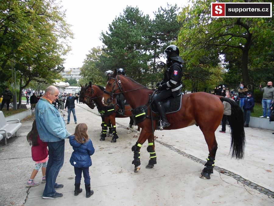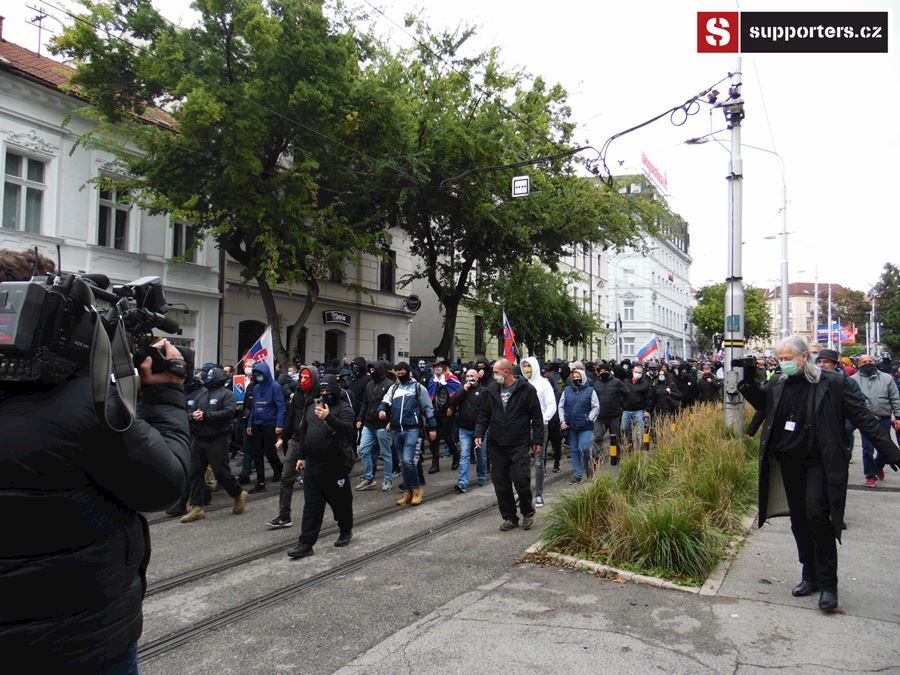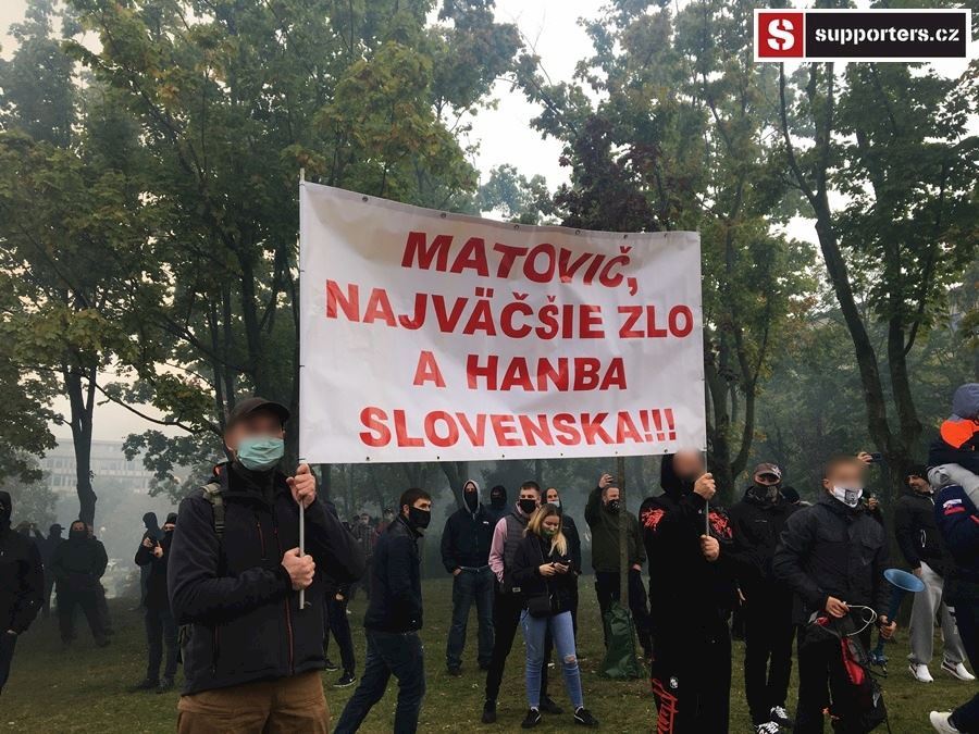Včera (17.10.) sa v Bratislave konal veľký fanúšikovský protest proti reštrikciám vlády. Zraz bol naplánovaný na Hlavnej stanici, odkiaľ sa účastníci demonštrácie presunuli pochodom pred Úrad vlády Slovenskej republiky.