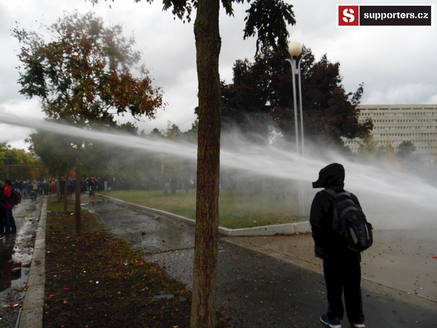 K problémom prišlo, keď polícia bez výstrahy použila proti protestujúcim vodné delo a slzný plyn. Polícia taktiež vypálila niekoľko gumových projektilov, v akcii boli kone aj psi. Slzný plyn sa ušiel aj mnohým novinárom a fotografom, vrátane nášho redaktora.