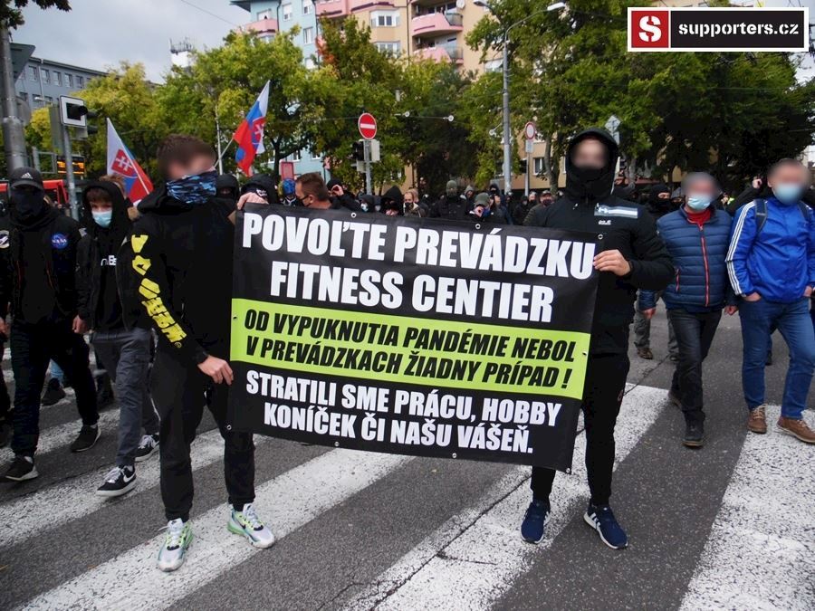 Protestu proti vládnym reštrikciám sa zúčastnili ultras z celého Slovenska