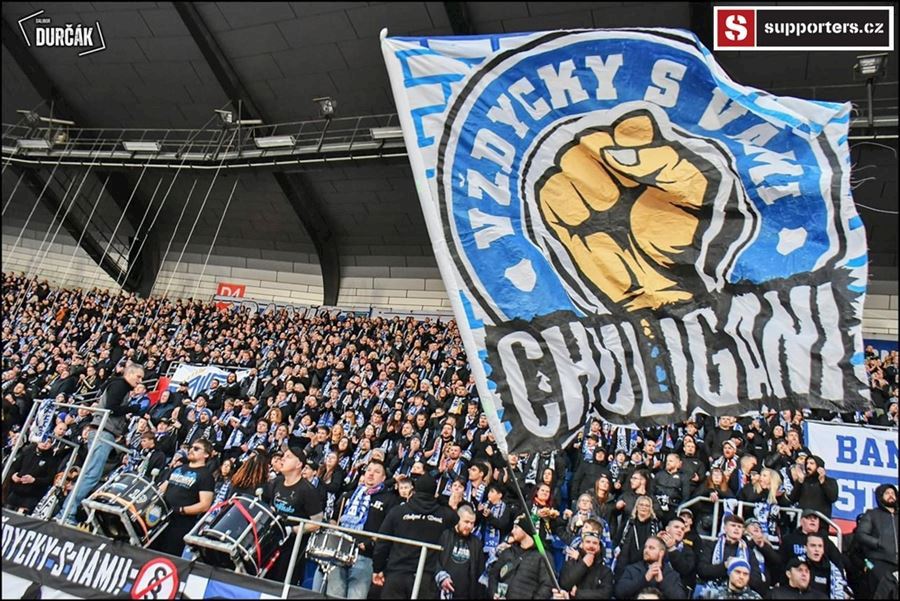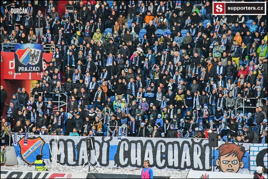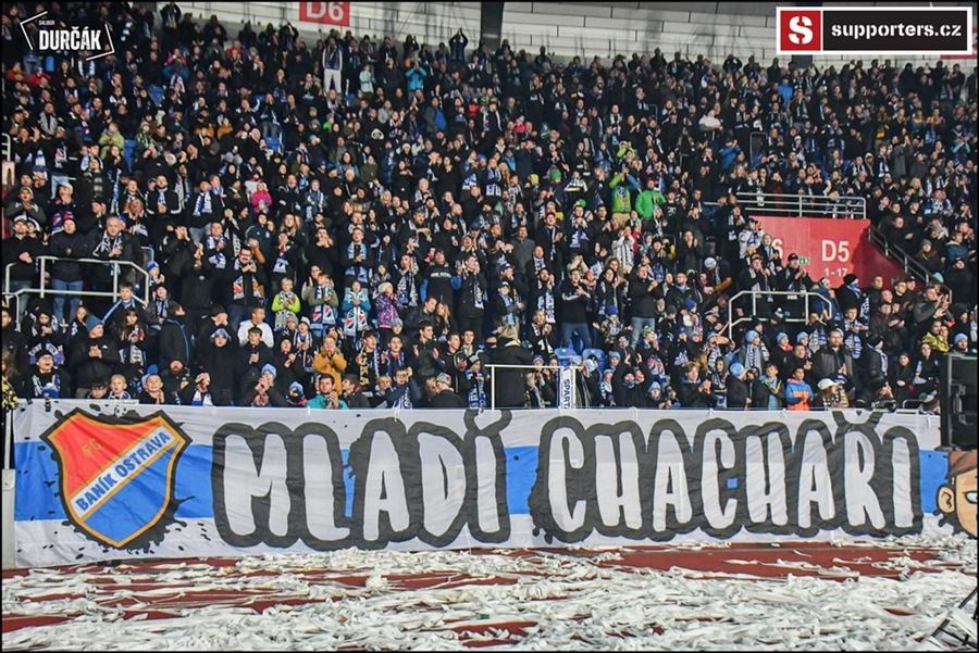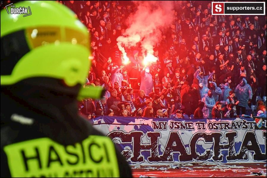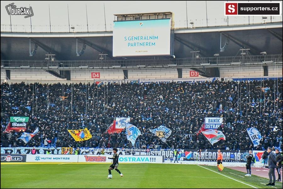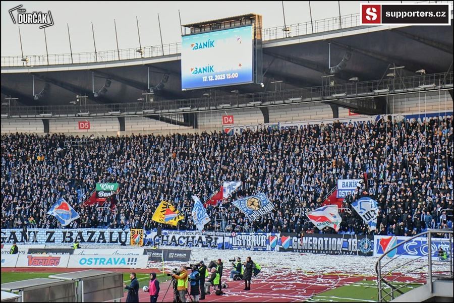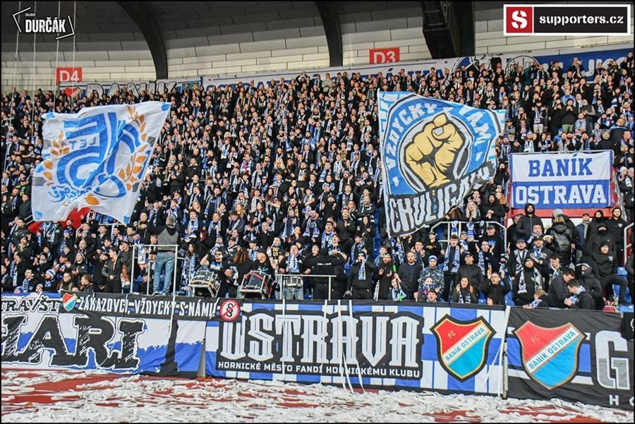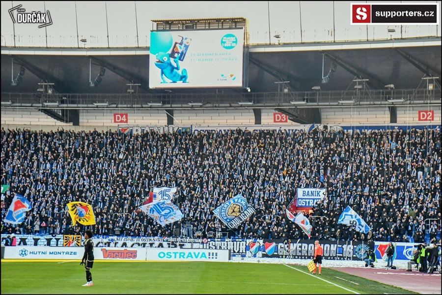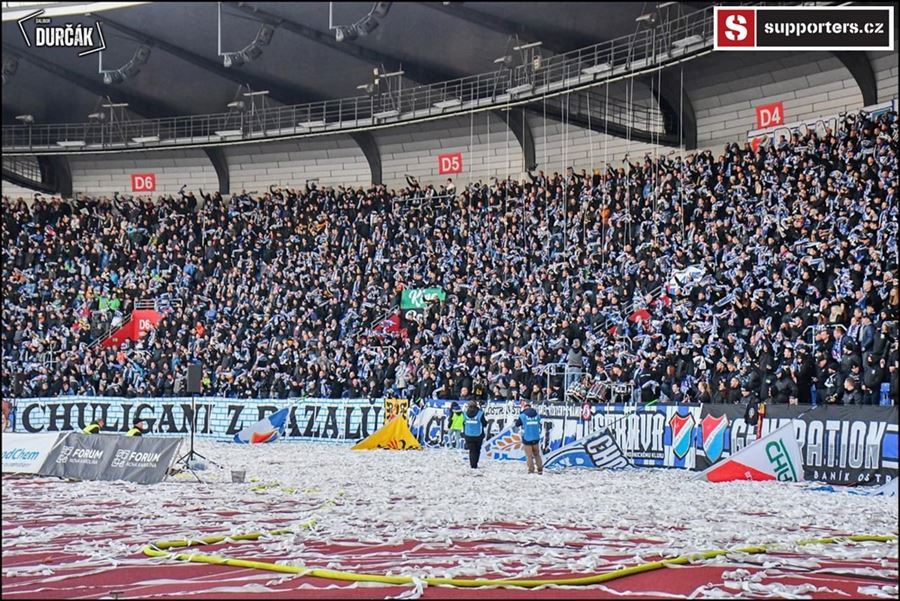 Tradiční ostravsko-pražské přátelské posezení se vydařilo! Plný stadion, zaplněný sektor hostí, konfety, kartoniáda, choreo a nemohla chybět ani vůně pyrotechniky...