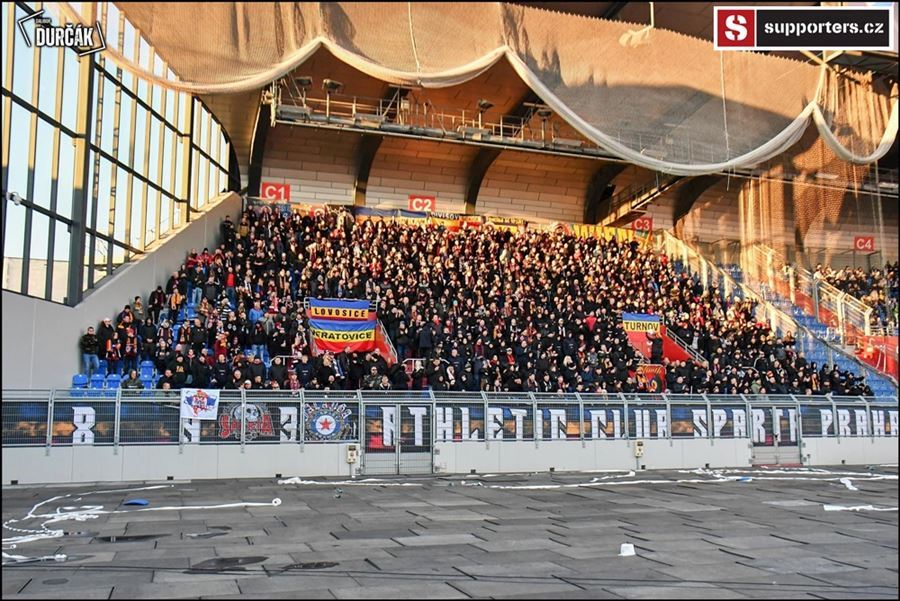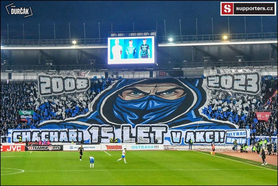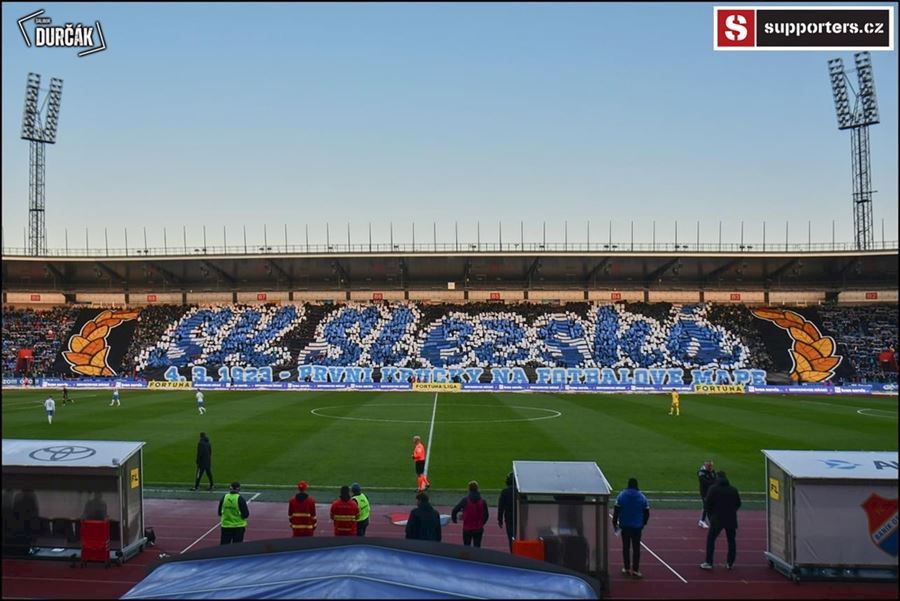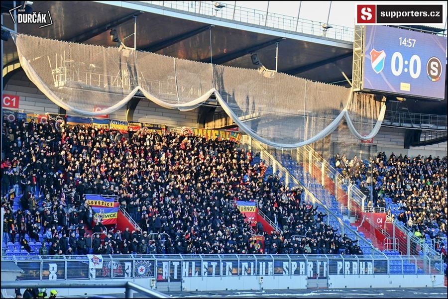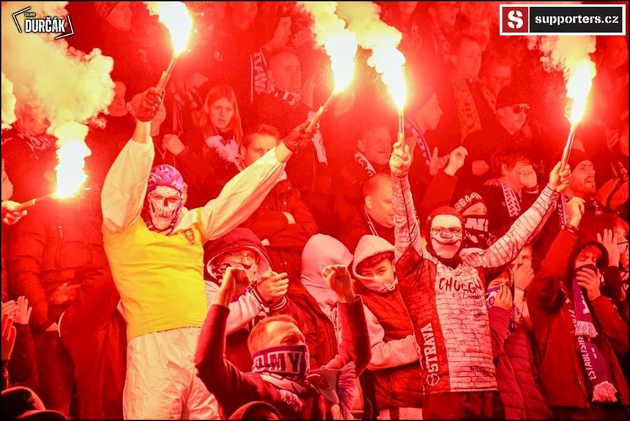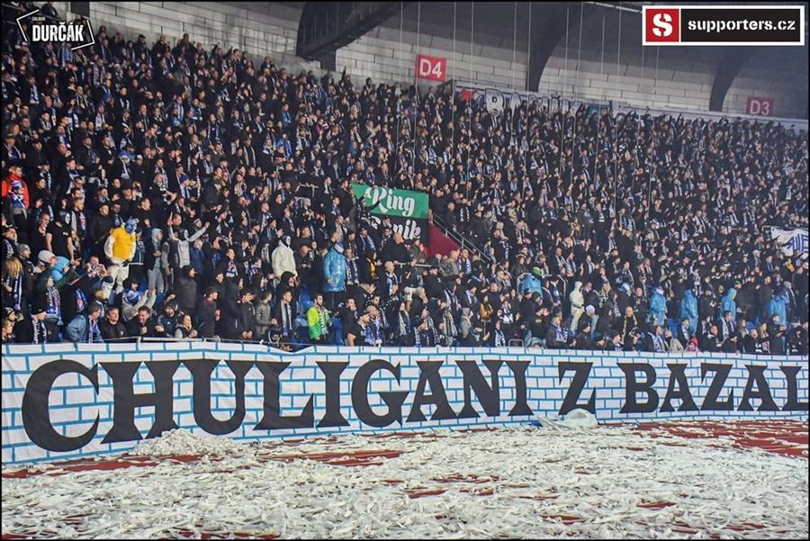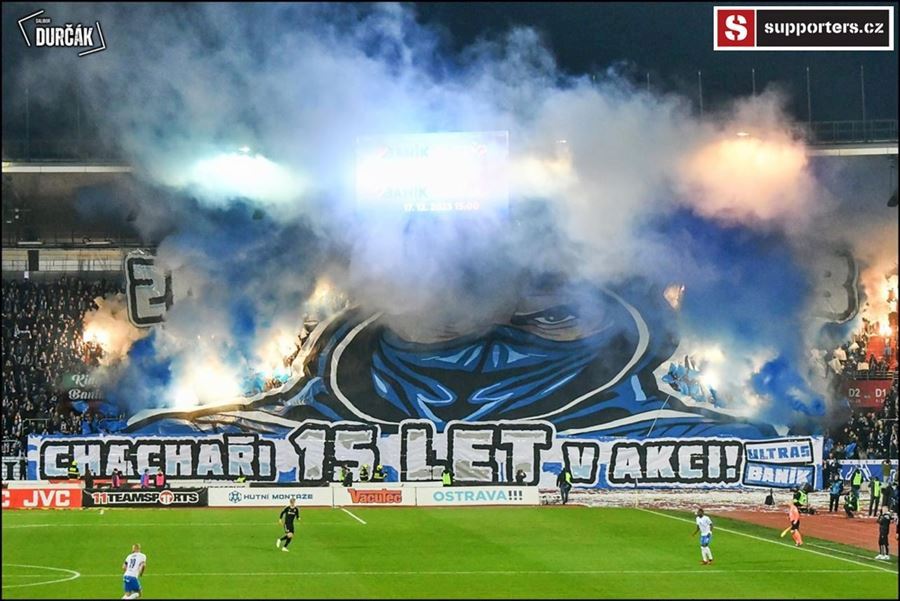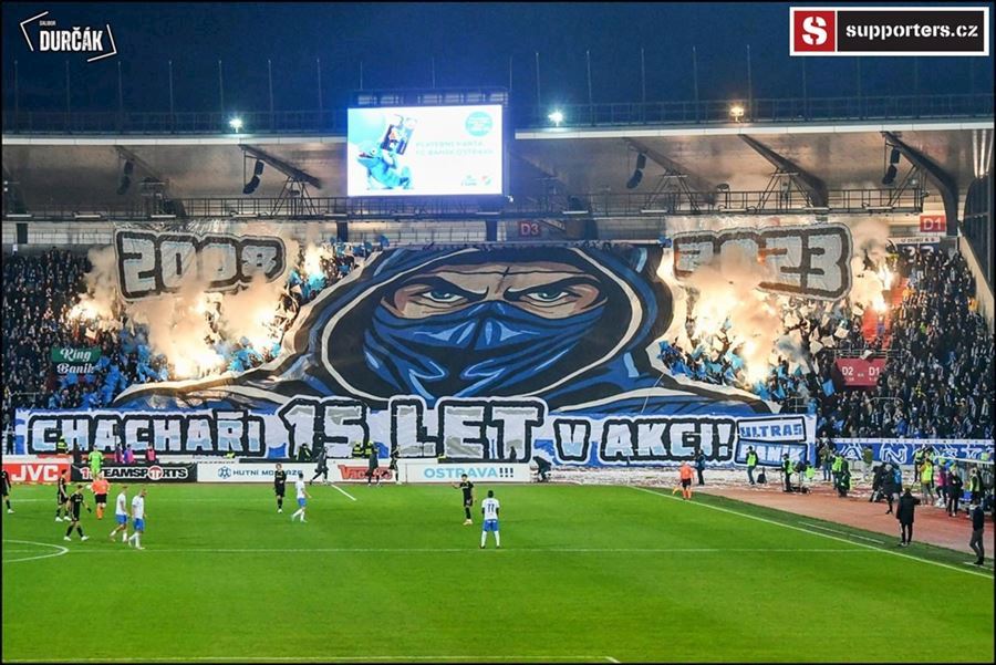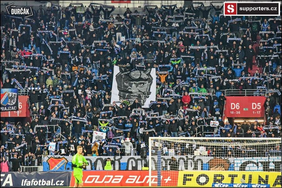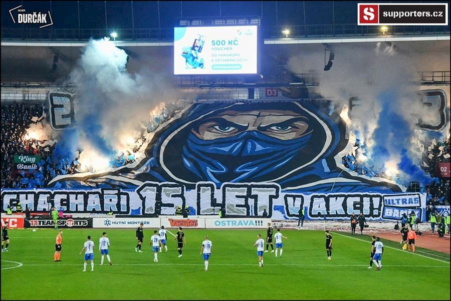 Tradiční ostravsko-pražské přátelské posezení se vydařilo! Plný stadion, zaplněný sektor hostí, konfety, kartoniáda, choreo a nemohla chybět ani vůně pyrotechniky...