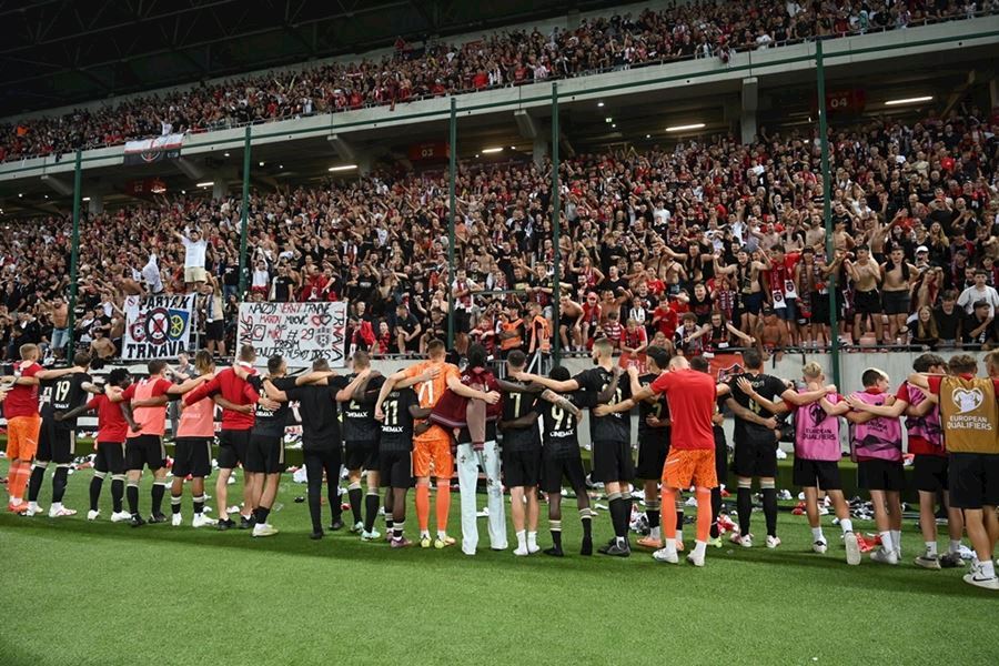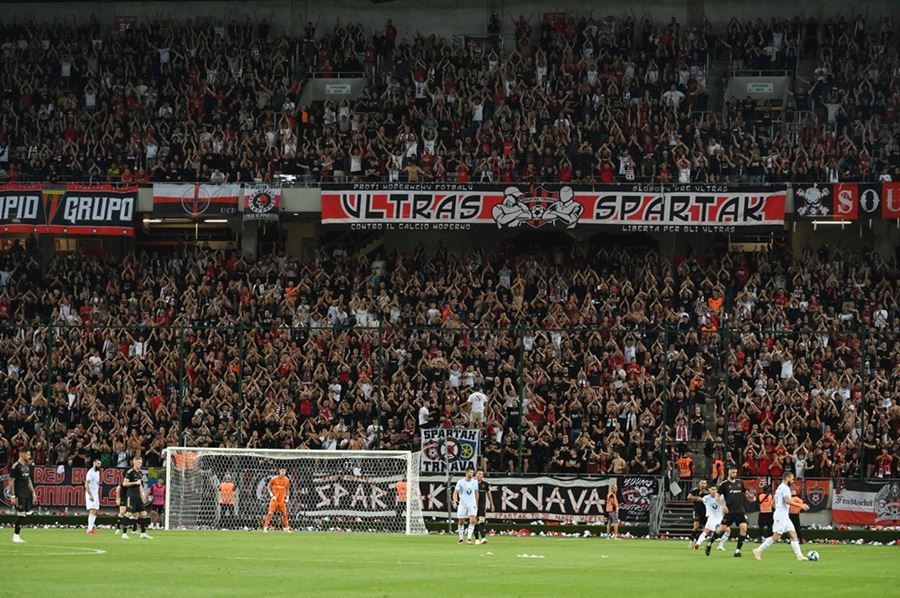 Trnava! Trnava! Trnava! Spartak vyřadil polský Lech. Postupový gól na 3:1 vystřihl obránce Štetina a stadion v Trnavě zalila euforie, kterou prostě chceš...