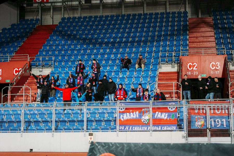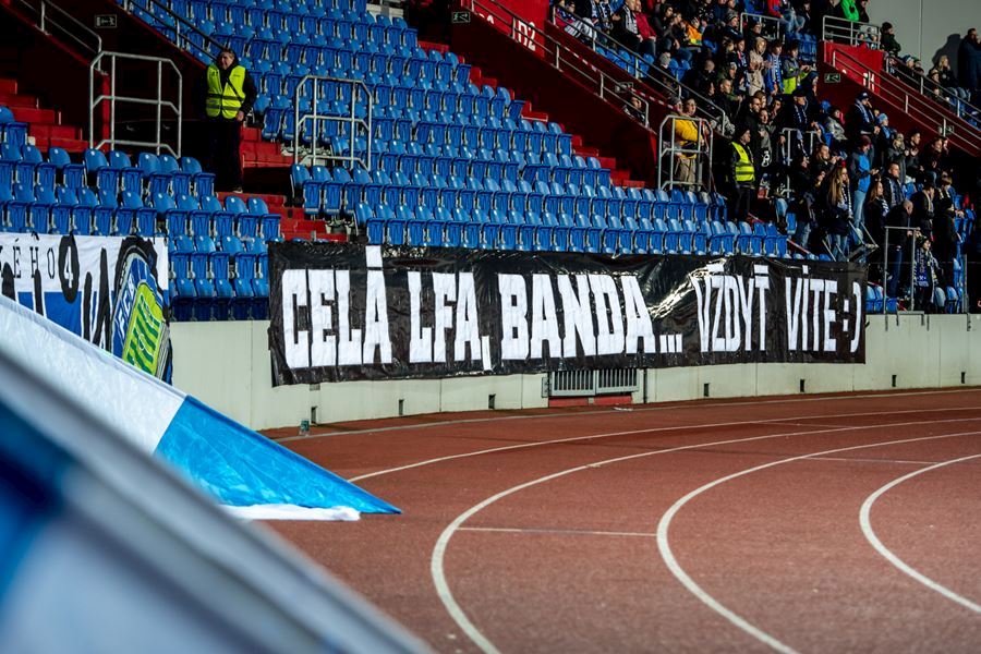 Uzavřený sektor Chacharů v zápase Baníku s Viktorií Plzeň směřoval vzkaz pro disciplinární komisi LFA: To je řešení? Celá LFA, banda... Vždyť víte... Baník nakonec podlehl Viktorce 0:1 brankou v 93. minutě. Utkání sledovalo 7.717 diváků.