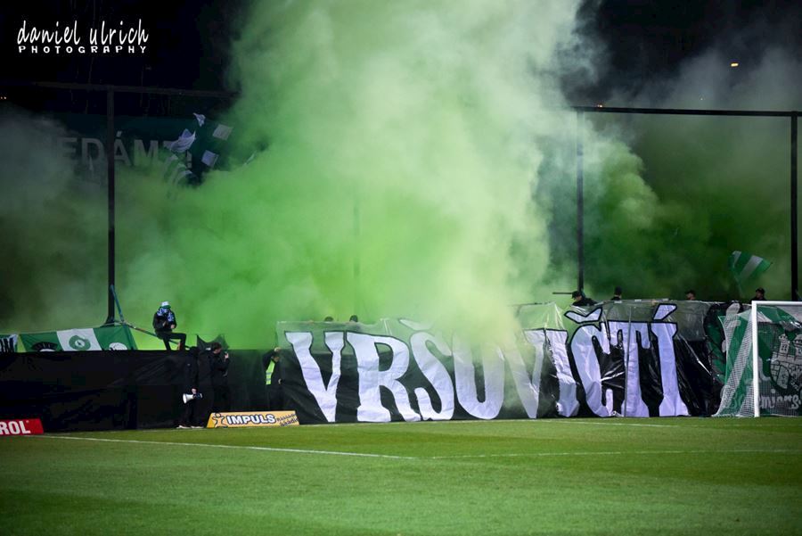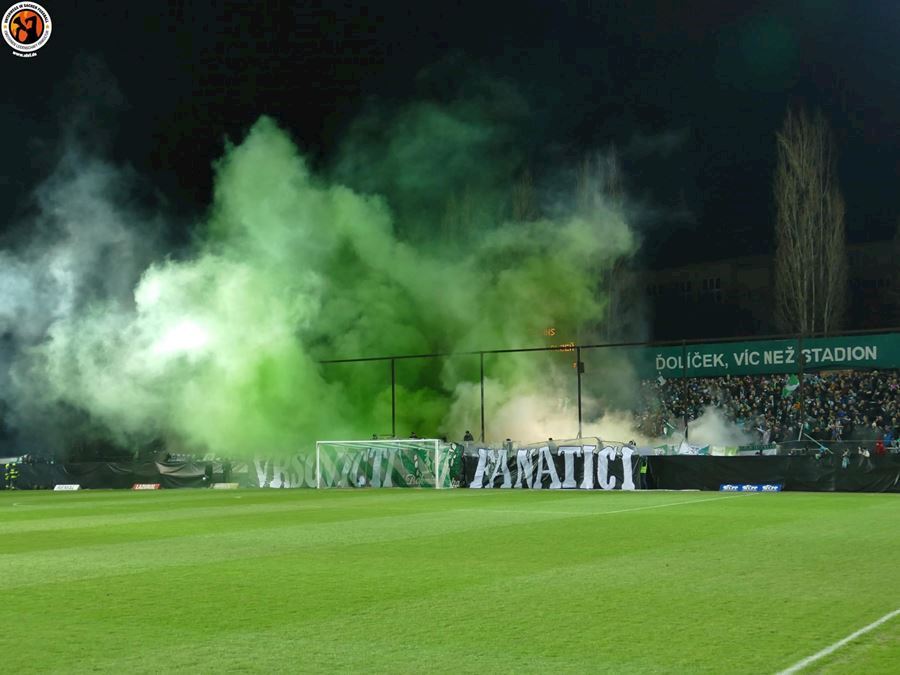 V Ďolíčku tradiční vůně pyrotechniky v podání vršovických fanatiků. Sektor fanoušků plzeňské Viktorie zasypaly konfety štěstí a radost z výhry na půdě klokanů...