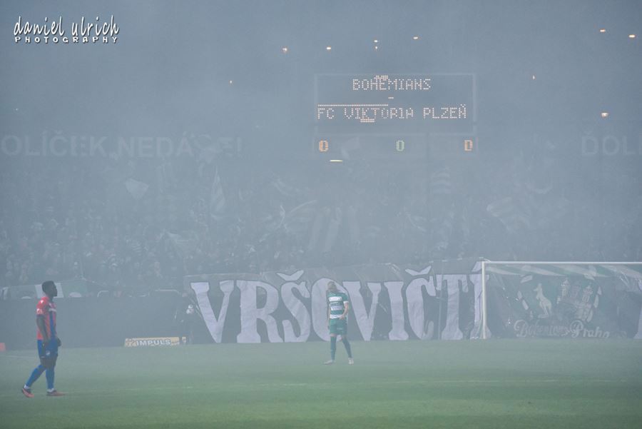 V Ďolíčku tradiční vůně pyrotechniky v podání vršovických fanatiků. Sektor fanoušků plzeňské Viktorie zasypaly konfety štěstí a radost z výhry na půdě klokanů... Utkání sledovalo 6.237 diváků včetně zaplněného sektoru hostí, kteří viděli výhru Plzně 2:0.