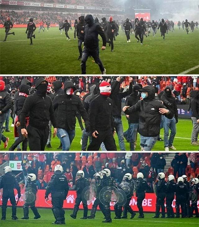 V Lutychu více jak 22 tisíc diváků, kteří si užili choreo a kvantum pyrotechniky. K bodům to nevedlo a po prohře 0:3 vtrhli fanoušci na hřiště, kde zasahovala policie...