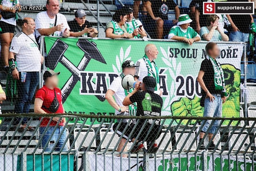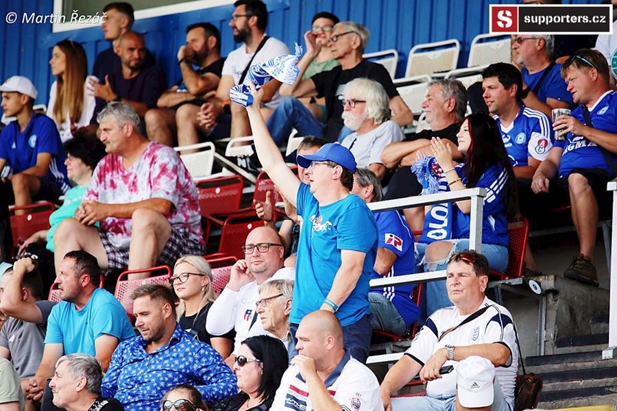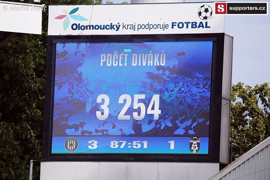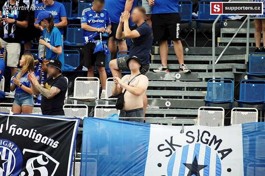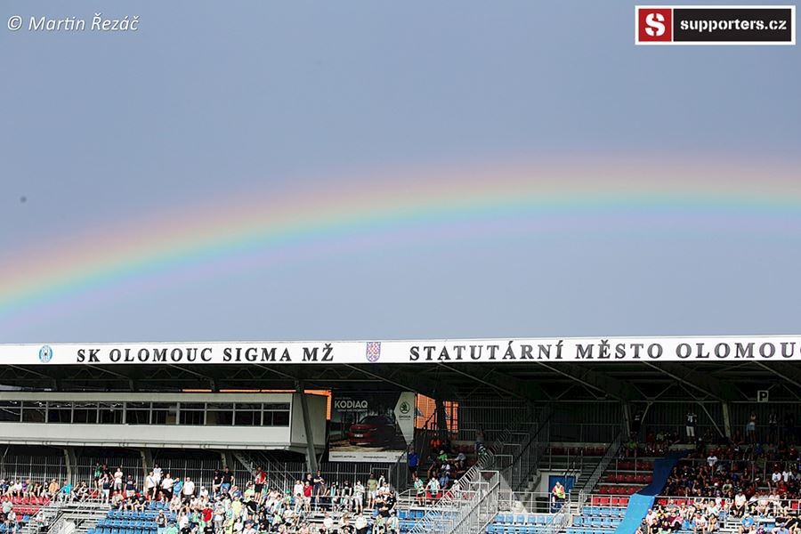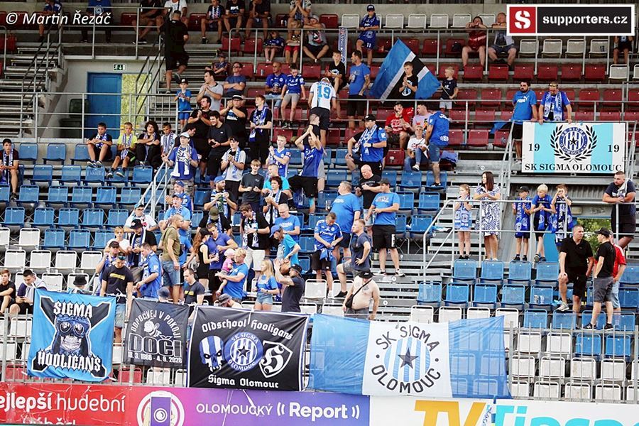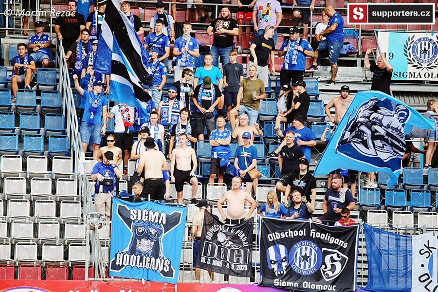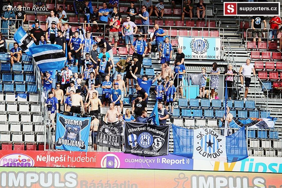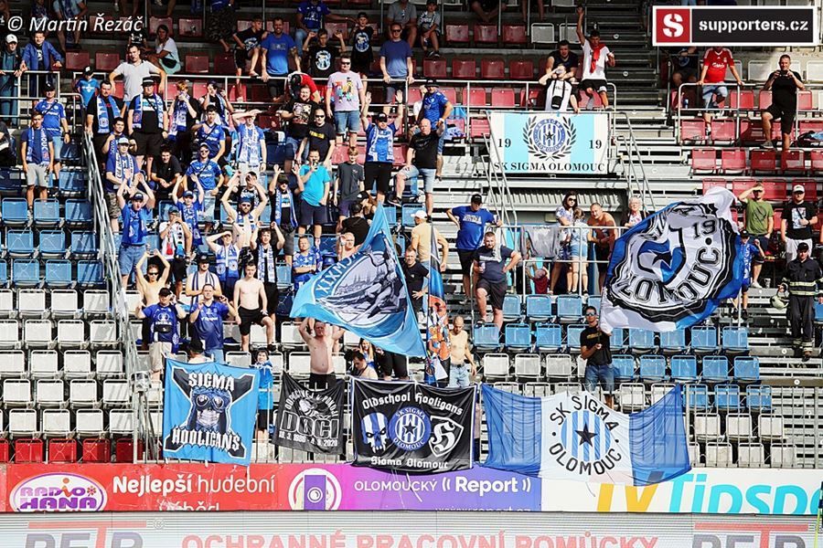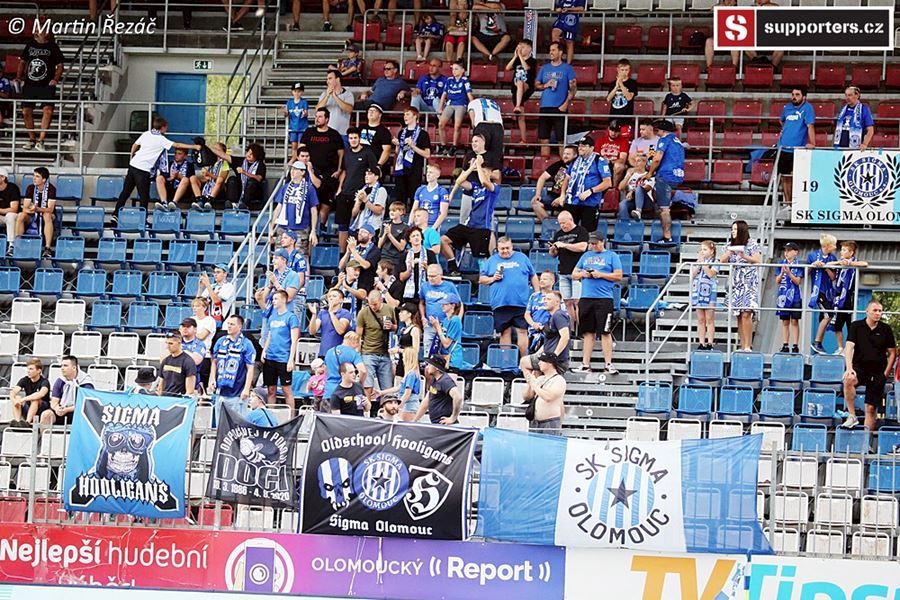 V Olomouci atmosféra z obou stran, v domácím sektoru choreo doplněné vlajkami a nechybí ani konfety. Z výhry 3:1 se, po přerušení deštěm, radují modrobílí ze sektoru S. Utkání sledovalo 3.254 diváků.