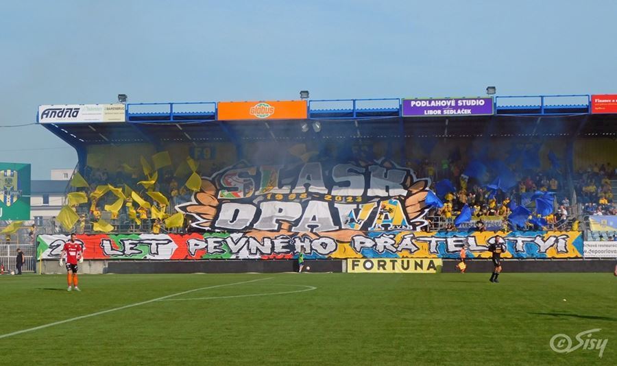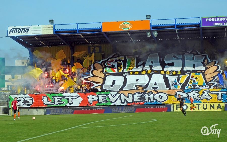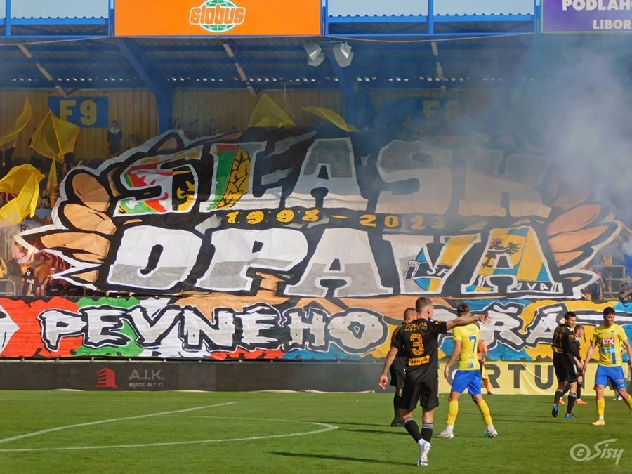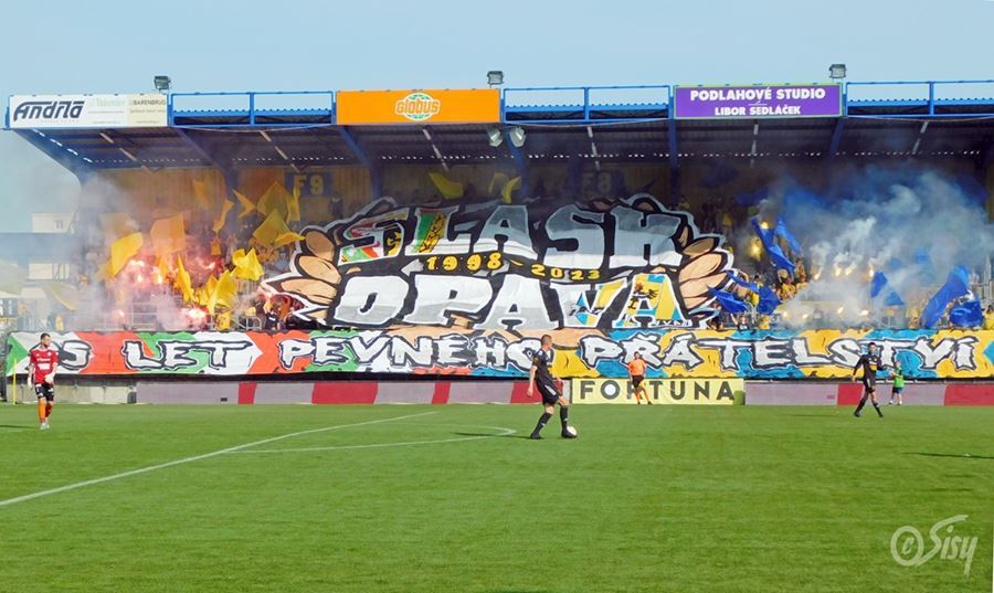 V Opavě oslavili 25 let pevného přátelství s WKS Wroclaw velkou choreografií doplněnou pyrem. V posledním zápase sezony vzpomněli i na zesnulého fanatika Rolanda...
