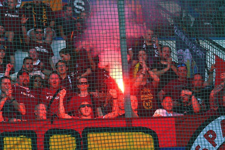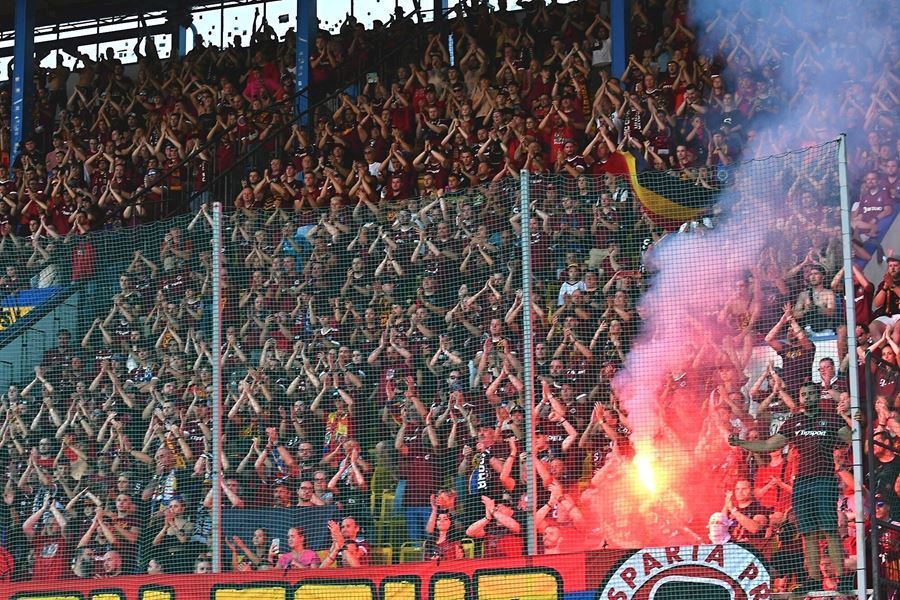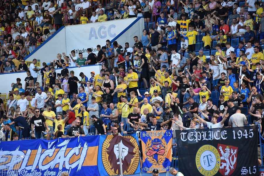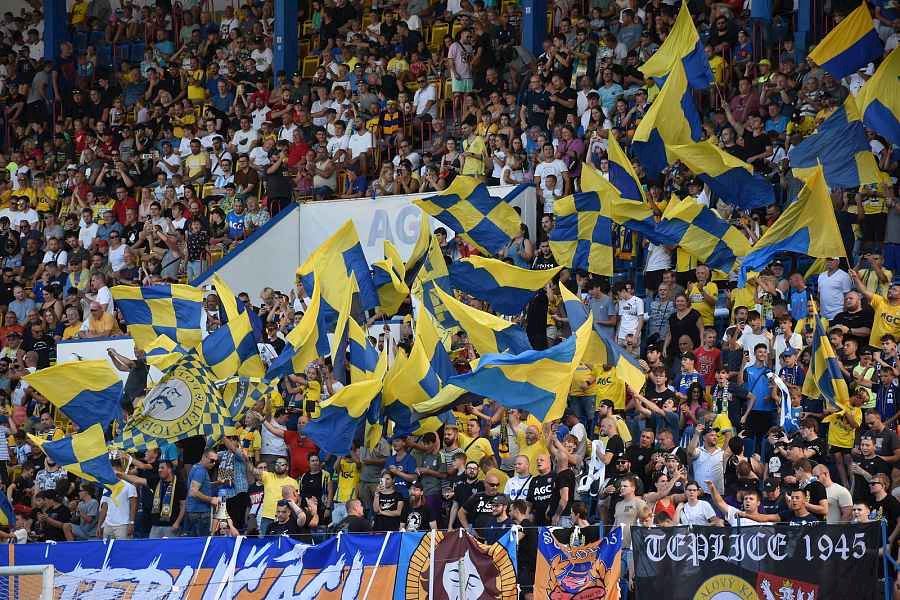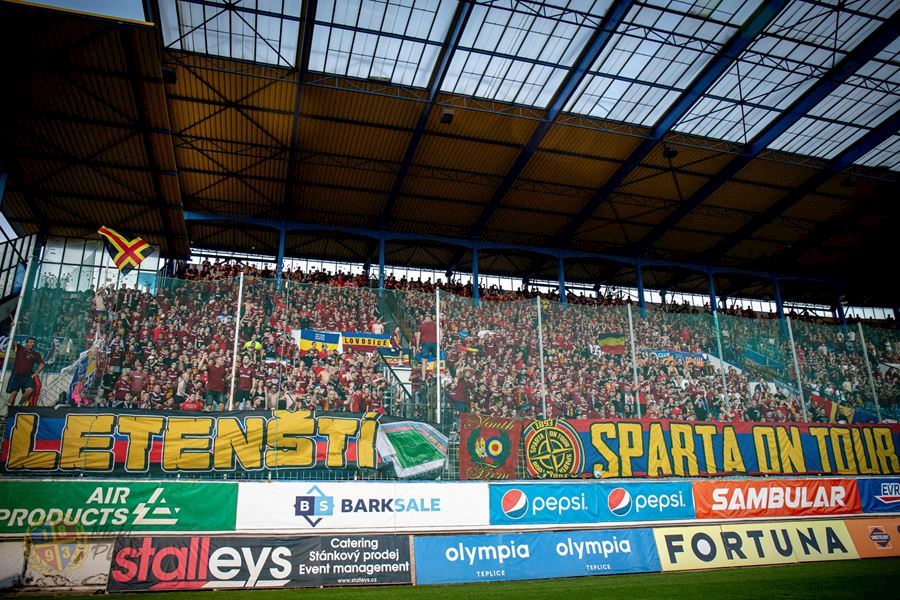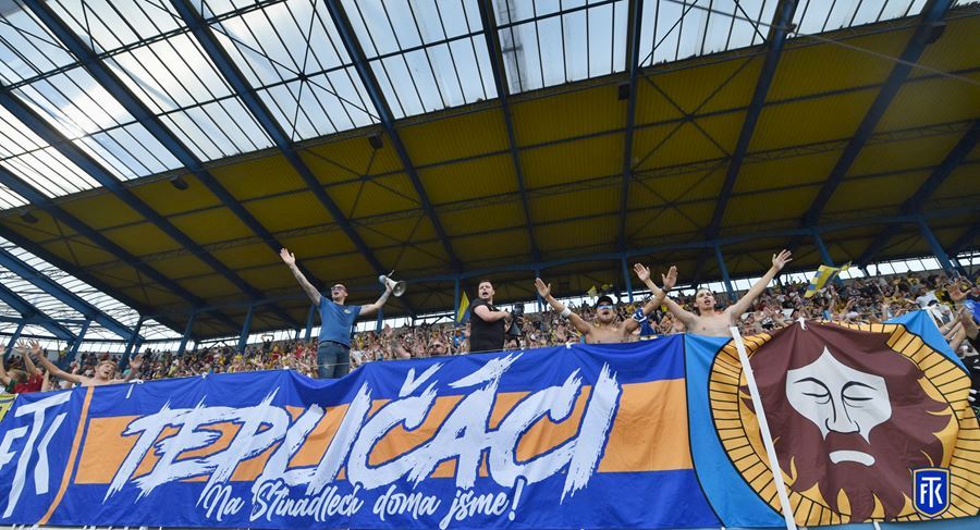 V Teplicích téměř 16 tisíc diváků! Invaze Sparty však přinesla pouze bod. Domácí fanoušci se zformovali za brankou, připravili si konfety a k vidění je rovněž choreo