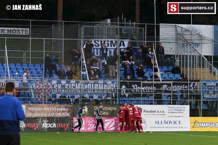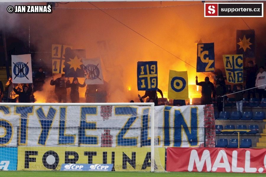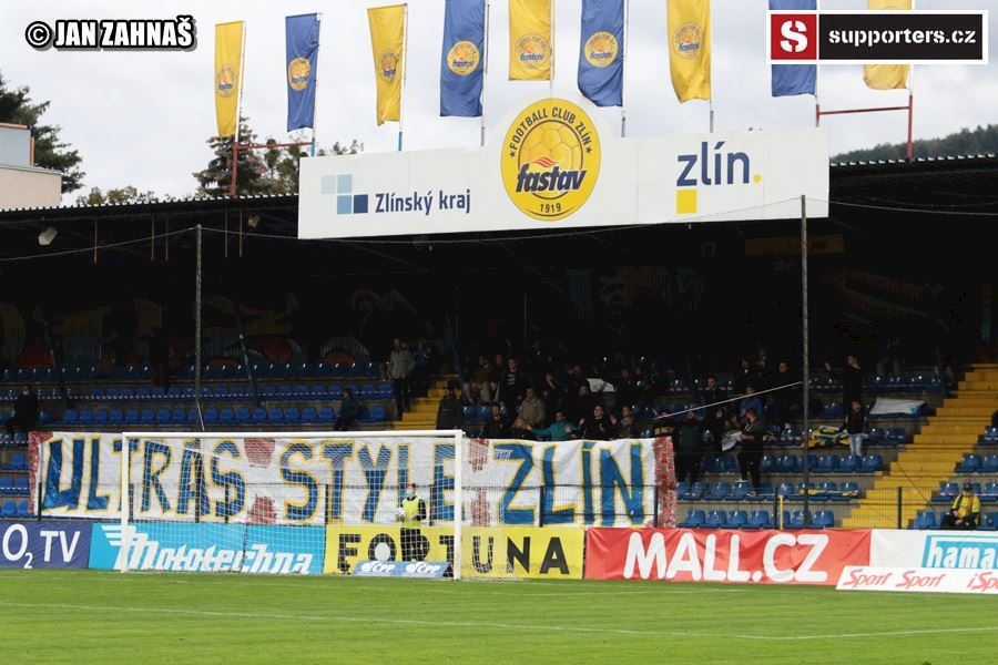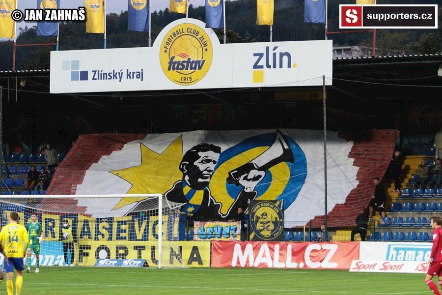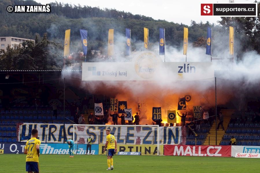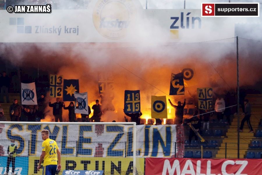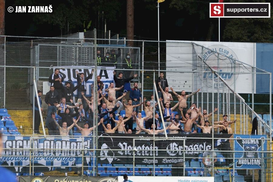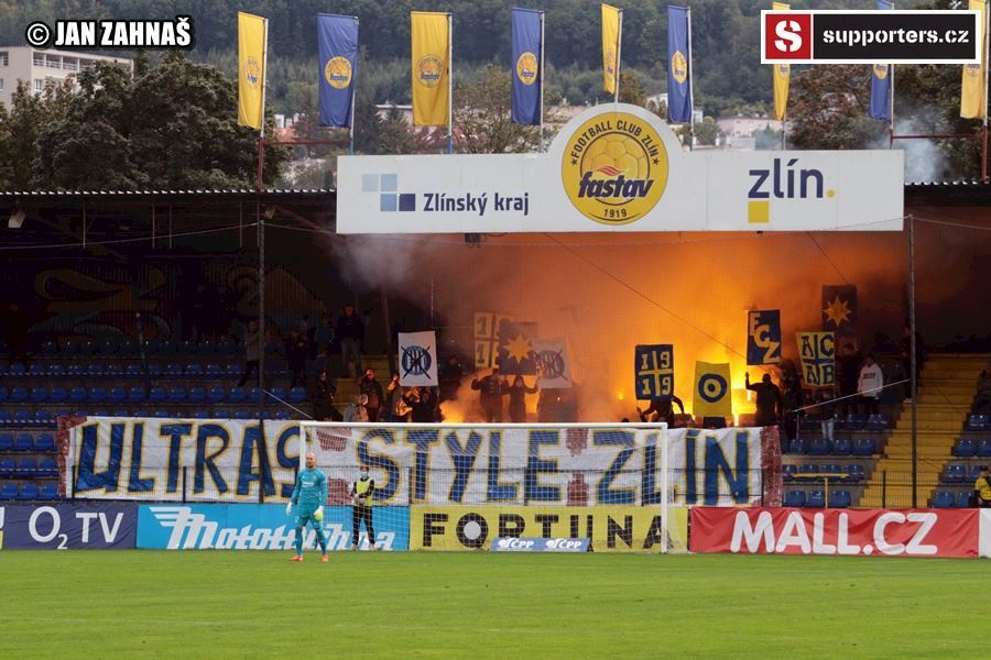Zlín otevřel sektor hostí pro Olomouc, v domácím sektoru pak choreo a pyro...