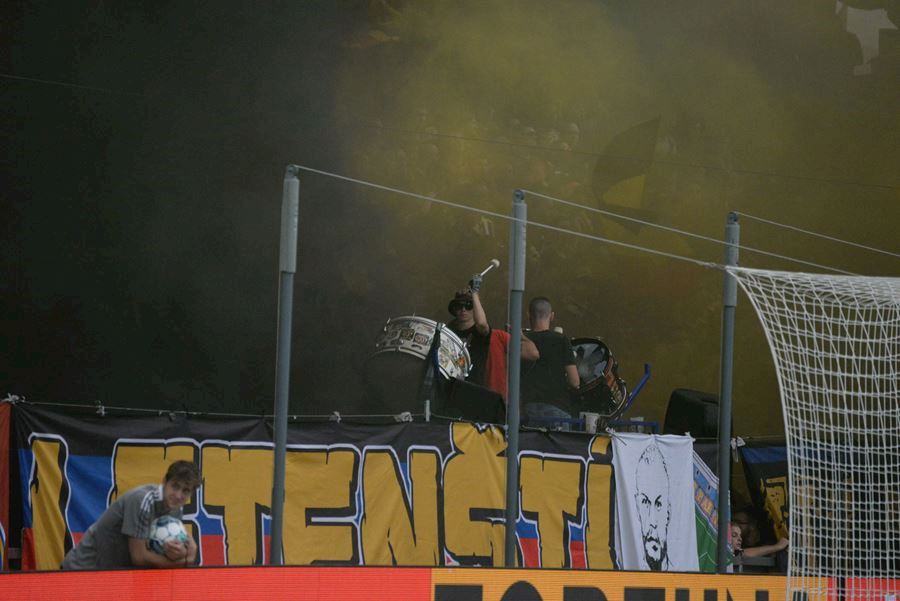 Vyprodaná Letná vykročila vítězně za 38. titulem. Utkání okořenily rovněž žluto-černé dýmovnice, které odkazují na letošní barevnou kombinaci k příležitosti 130 let vzniku ACS