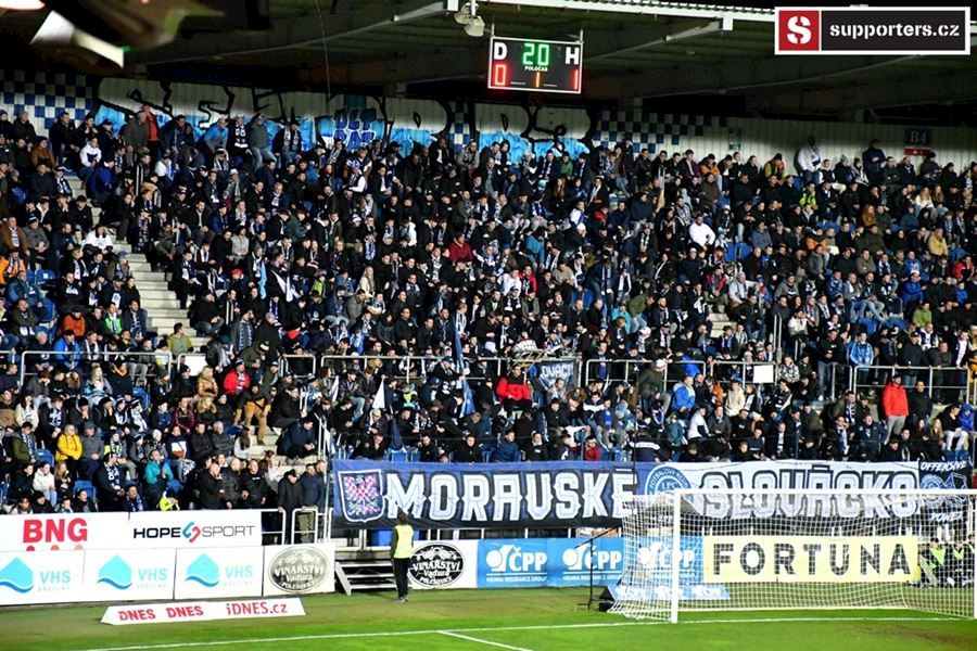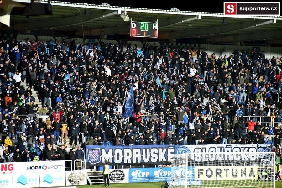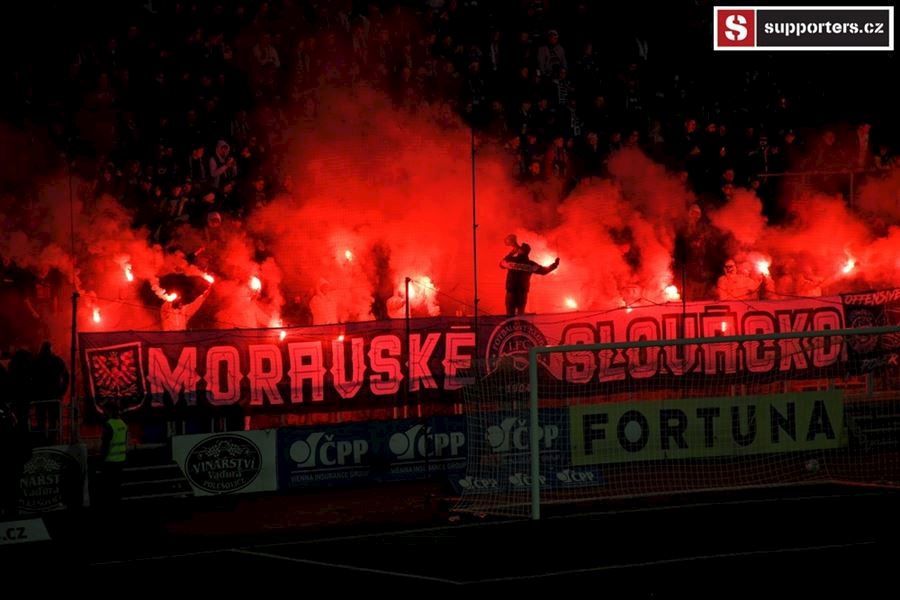 Vyprodané utkání na Slovácku s výbornou atmosférou z obou stran. Z výhry se radují fanoušci Sparty, a tak si domácí fanoušci dělají radost alespoň pyrotechnikou. Výhru Sparty 3:1 sledovalo v Uherském Hradišti 8000 diváků.