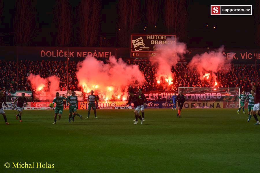 Vyprodaný stadion viděl fotbalovou kanonádu, choreografie v obou sektorech a Dolíček provoněla pyrotechnika. Z výhry 6:2 se radovali fanoušci hostující Sparty.