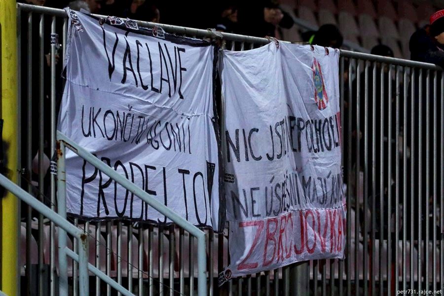 Vystřelí katapult ze Zbrojovky? Tlak fanoušků na majitele stoupá. Fanoušci při včerejším zápase s Táborskem vyvěsili nápisy, přinesli smuteční věnec a došlo i na konflikt u VIP
