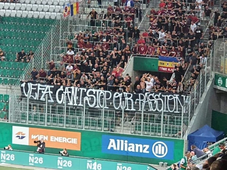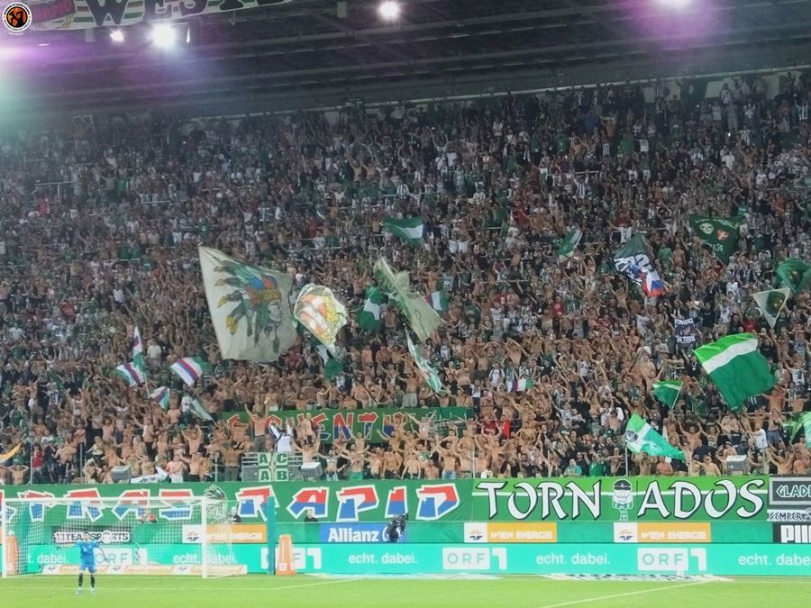 Skvělou atmosféru provázelo utkání o Ligu mistrů mezi vídeňským Rapidem a pražskou Spartou. Téměř dvacet tisíc fanoušků v hledišti včetně cca 600 fanoušků Sparty dali vzpomenout na předpandemické časy. V hledišti je k vidění několik nápisů včetně toho v sektoru hostí „UEFA nemůže zastavit naši vášeň“. Rapid ve druhém poločase otáčí vývoj utkání a vítězí nad Spartou 2:1.