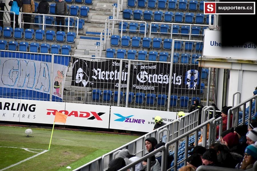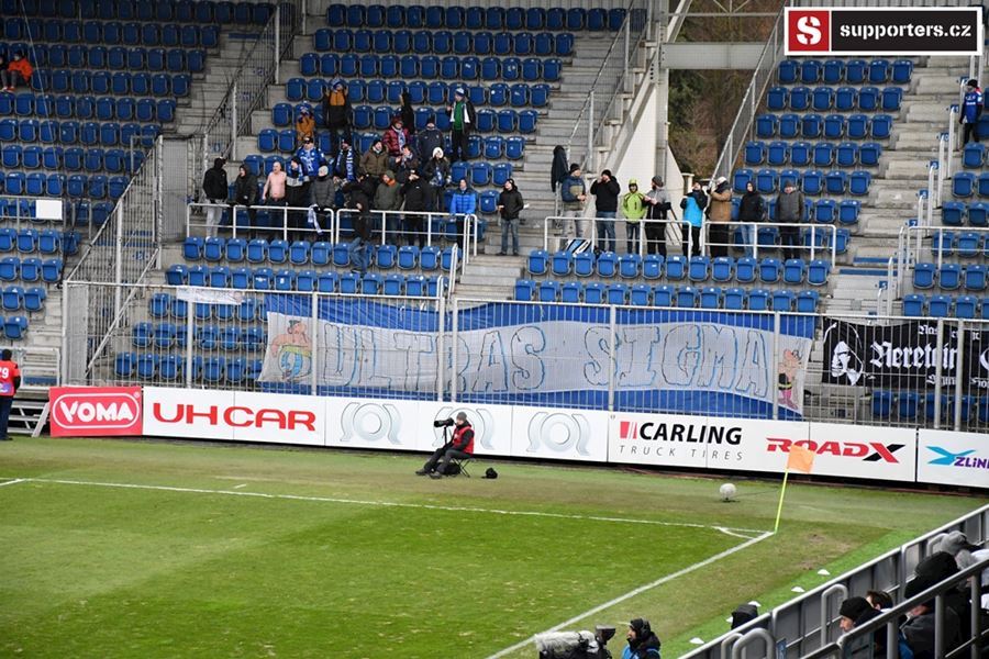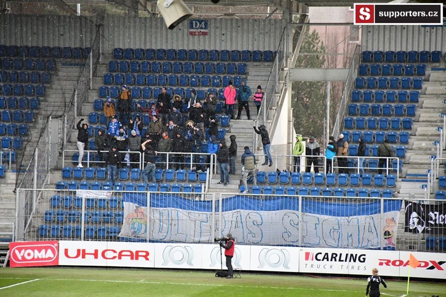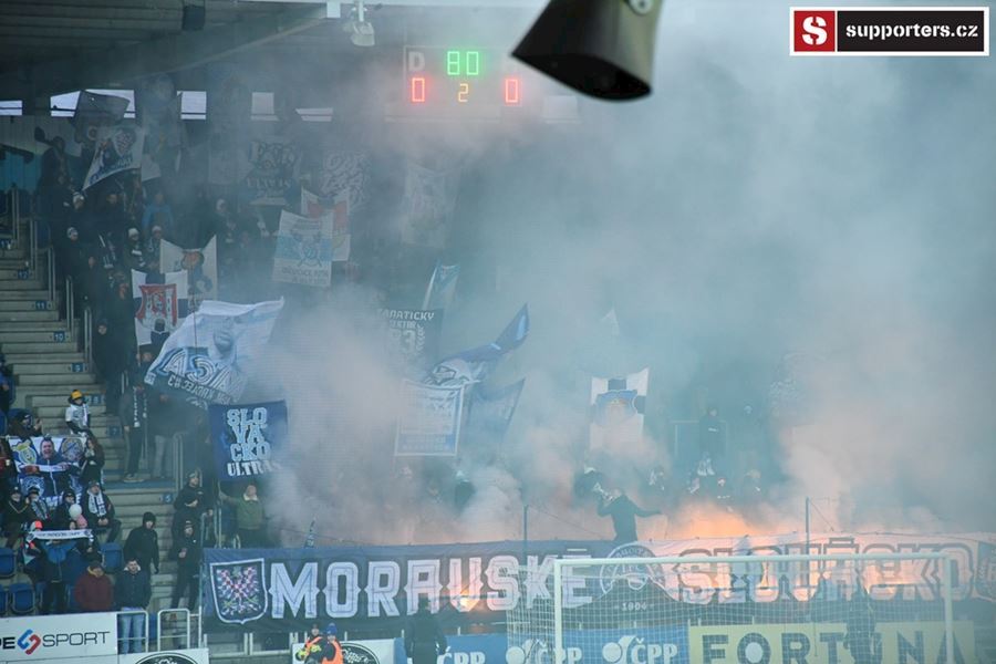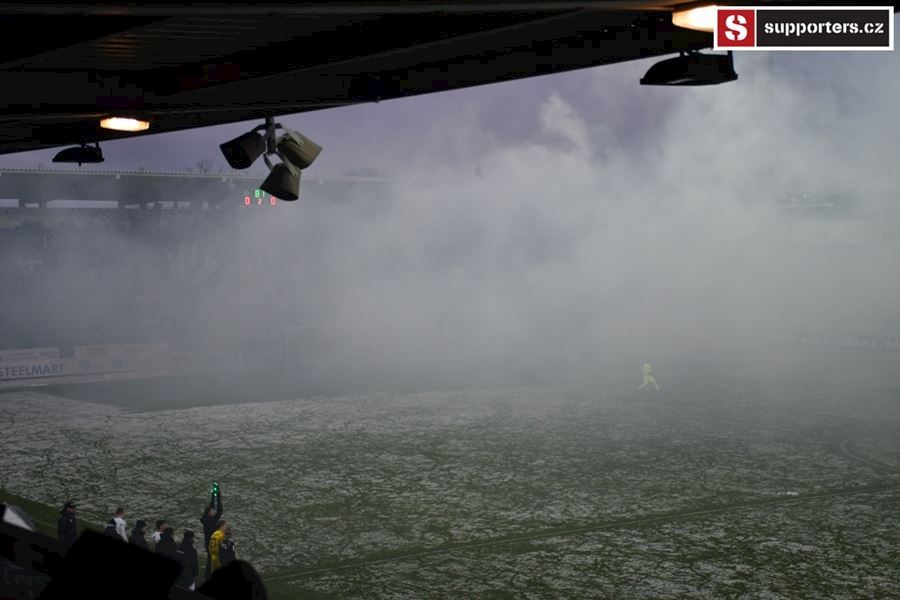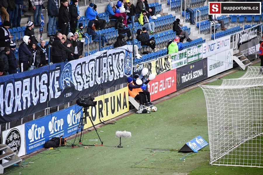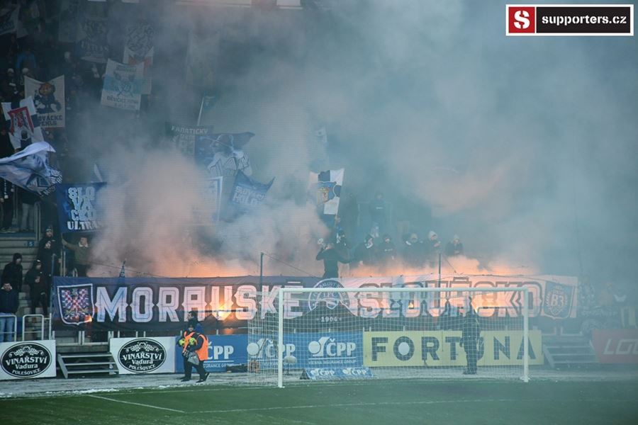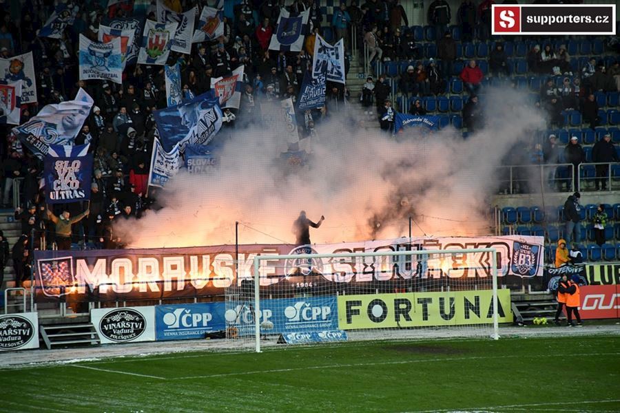 Moravské derby mezi Slováckem a olomouckou Sigmou sledovalo 2.812 diváků. Branky se fanoušci nedočkali, a tak se v zimě, větru a sněhové bouři zahřáli alespoň odpálenou pyrotechnikou za novou vlajkou - Moravské Slovácko.